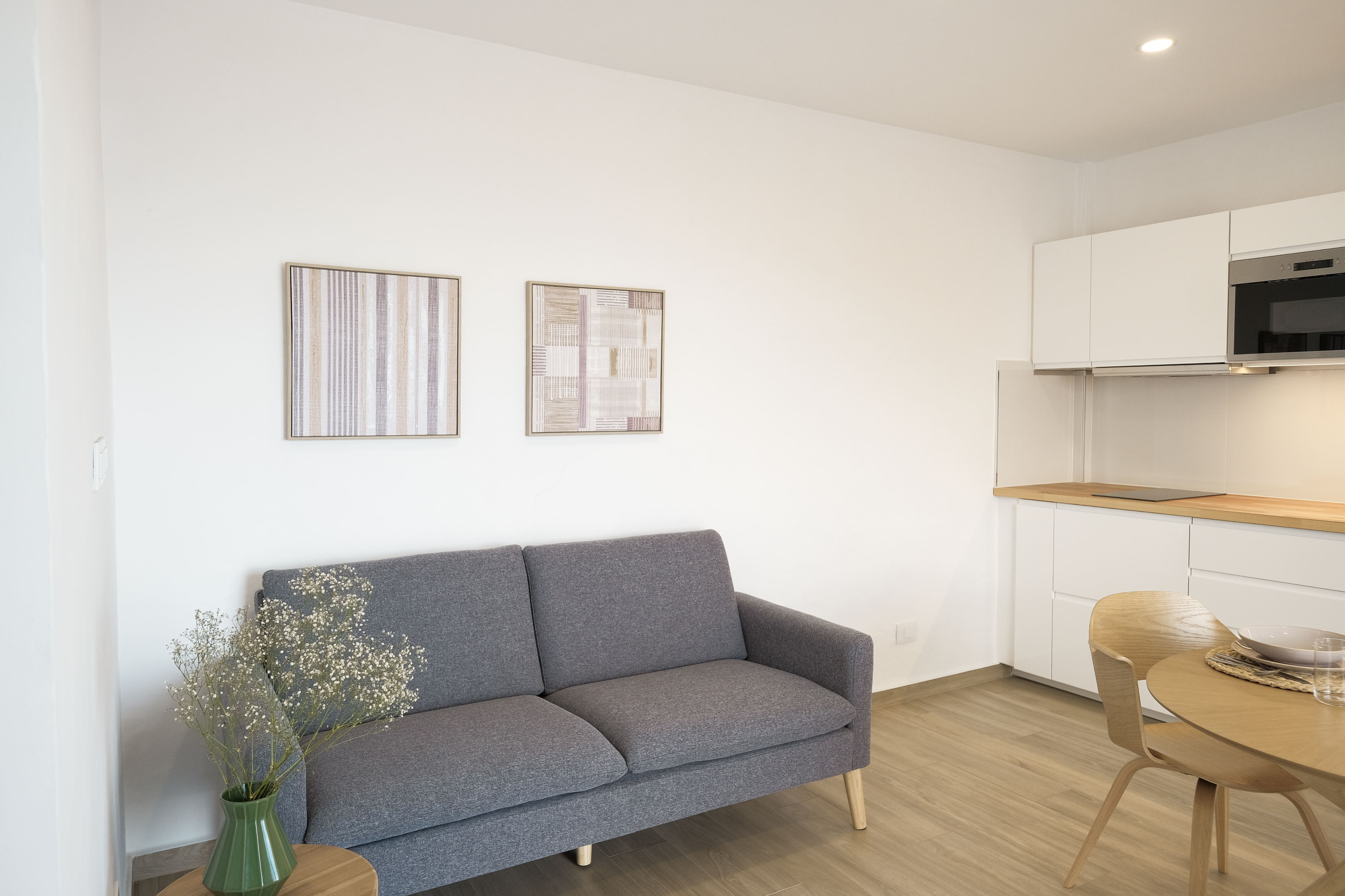 Jedes Apartment wurde mit viel Liebe zum Detail gestaltet und vereint Komfort, Stil und Funktionalität. Die Anlage verfügt über einen spektakulären Infinity-Pool mit direktem Blick auf das Meer und die Berge. Ein idealer Ort, um sich zu entspannen und die Ruhe der Umgebung zu genießen.