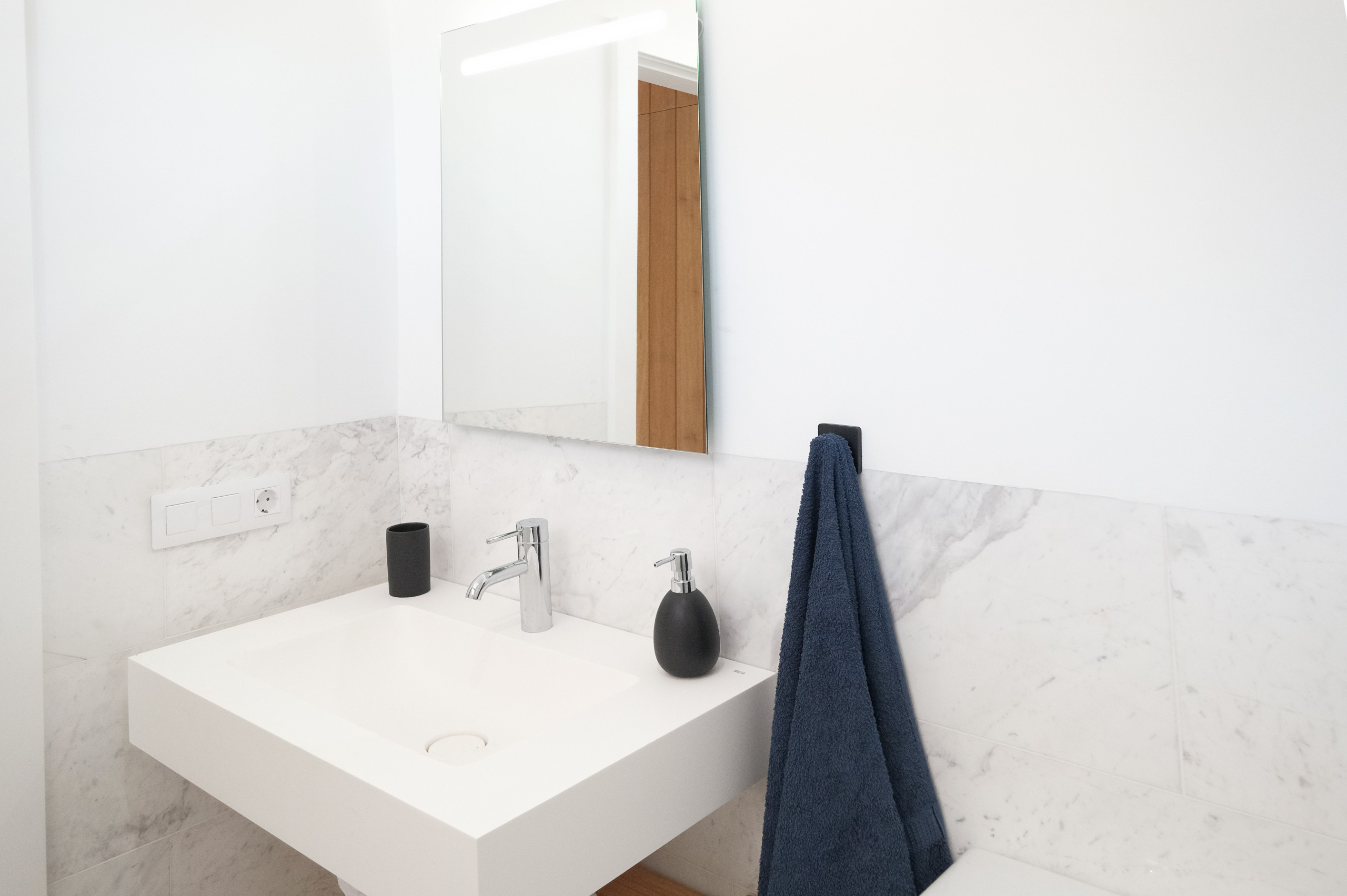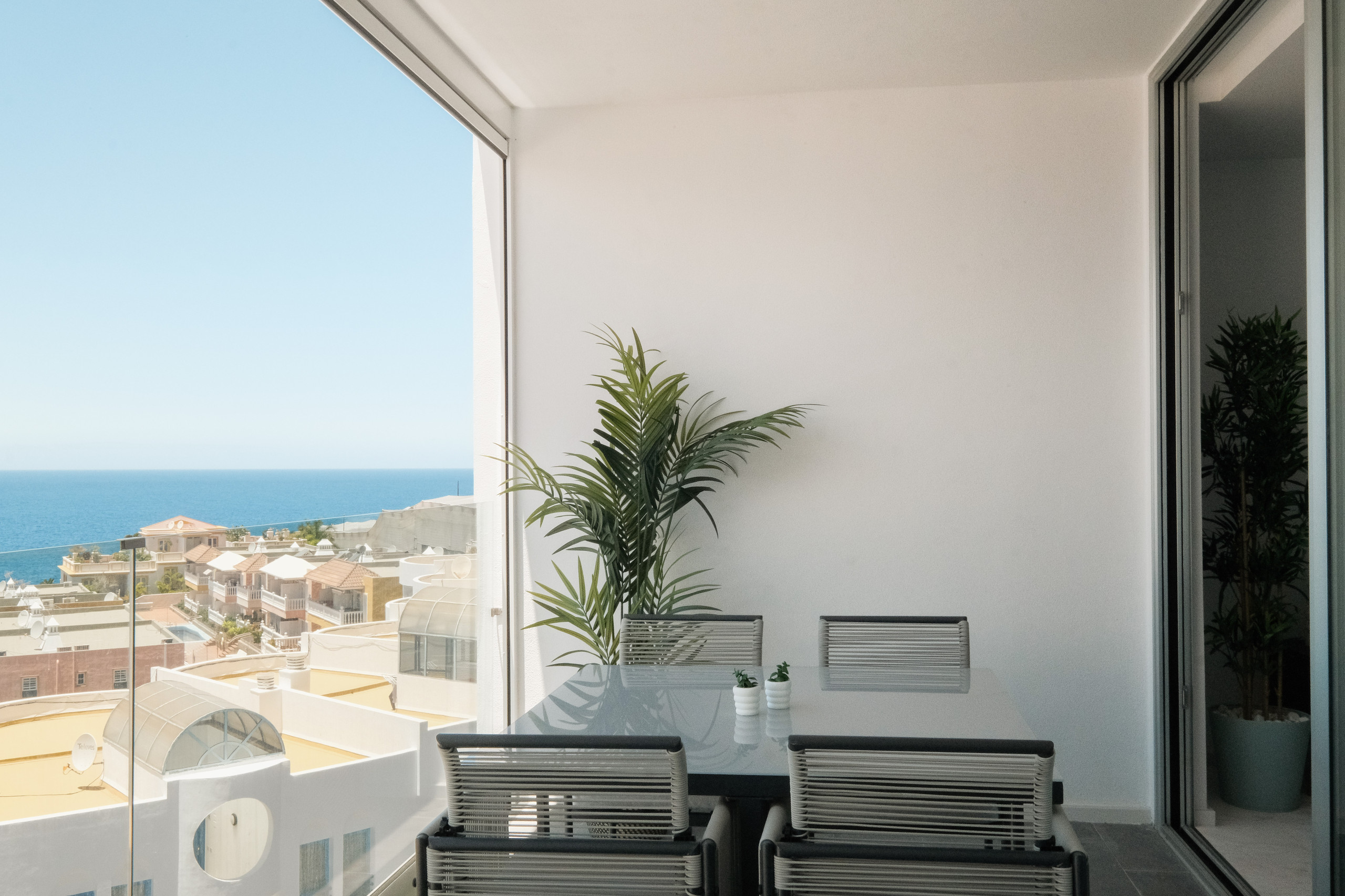 Die Unterkunft verfügt über zwei Schlafzimmer, ein vollständiges Badezimmer, Klimaanlage in allen Räumen und eine geräumige private Terrasse mit elektrischer Markise, perfekt um im Freien zu jeder Tageszeit zu genießen. Auf dem Dach des Gebäudes können die Gäste einen gemeinschaftlichen Pool nutzen, der ideal zum Abkühlen und Entspannen mit Aussicht ist.