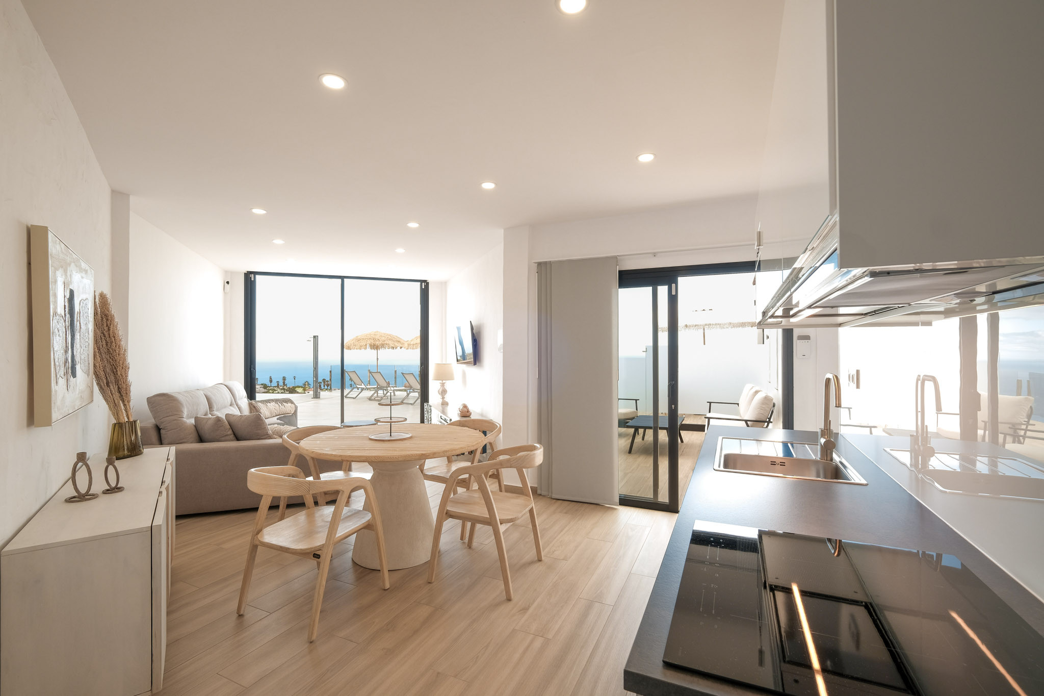 Each apartment has been carefully designed, combining comfort, style, and functionality. The complex features a stunning infinity pool with direct views of the sea and the mountains, creating an unforgettable place to relax and enjoy the calm of the environment.